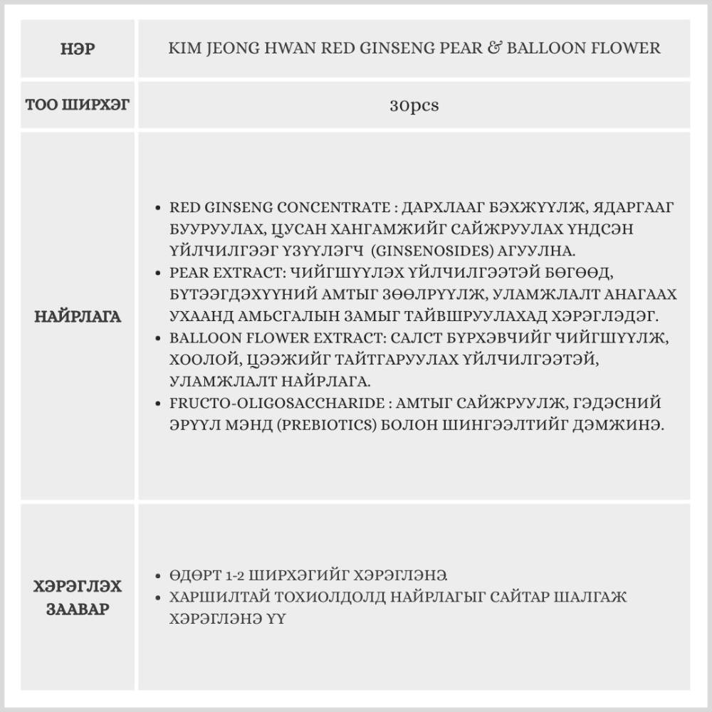 Kim Jeong Hwan Red Ginseng Pear & Balloon Flower 30pcs /Хүн орхоодой/