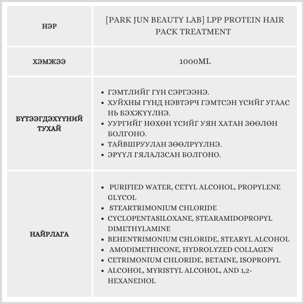 [Park Jun Beauty Lab] LPP Protein Hair Pack Treatment 1000ml /Үсний ангижруулагч/