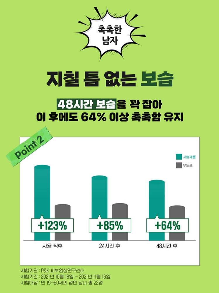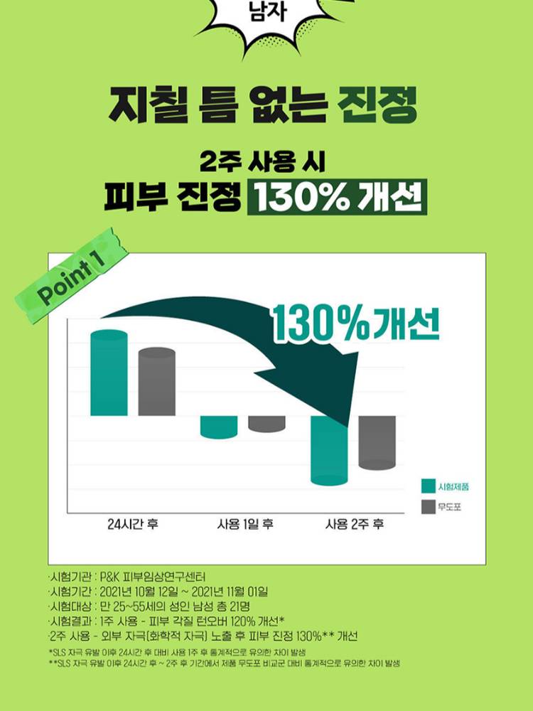 Уг бүтээгдэхүүн нь 2долоо хоногийн хугацаанд 130% тайвшруулна. 48цагийн туршид 64% дээш чийгшлээ барина. Эмзэг мэдрэмтгий арьсны тест хийгдсэн бөгөөд батгатай арьсанд хэрэглэхэд тохиромжтой. Арьсыг бат бөх болгох 9төрлийн ургамал агуулсан.