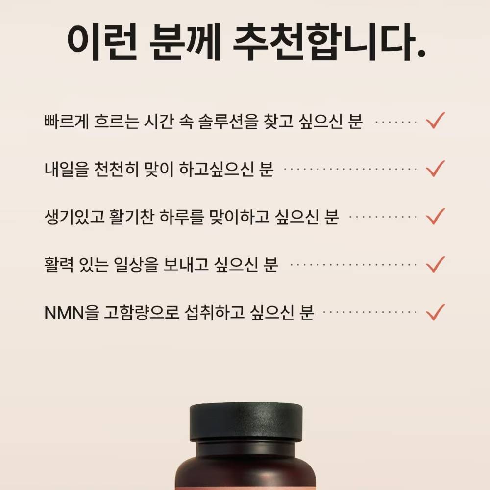 Залуужуулах тодотголтой NMN бэлдмэл. -Эрч хүч, энерги, эсийн сэргэлттэнд нөлөөлнө. -Эсийн нөхөн сэргэлт, хөгшрөлтийн явцыг удаашруулна. -Зүрх–судас болон энергийн солилцоо, метаболизмийг дэмжинэ. Хоол хүнсээр NAD+-ийн хангалтгүй авч байгаа тохиолдолд нэмэлтээр хэрэглэнэ.