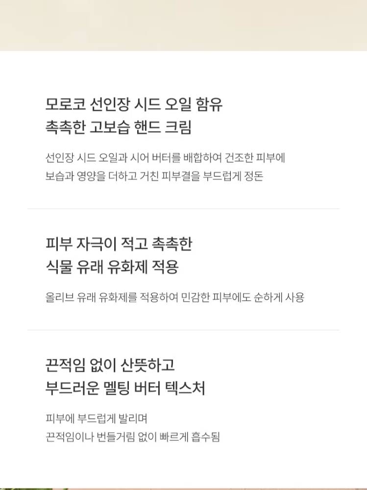 Энэхүү гарын тос нь кактусын үрийг ашигласан бөгөөд хуурай арьсанд чийгшил өгөн тэжээл өгч арьсны бүтцийг зөөлөн болгоно. Ургамалын гаралтай найрлагатай тул эмзэг мэдрэмтгий арьсанд ч тохиромжтой.