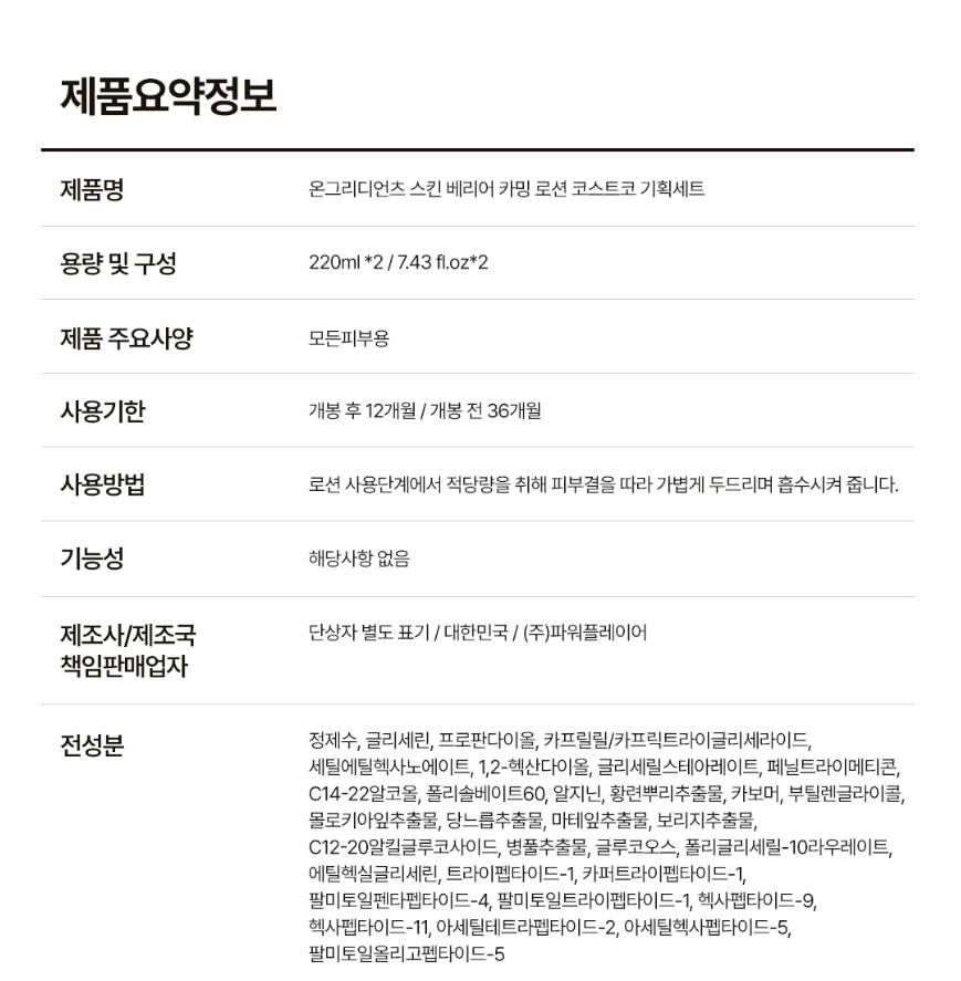 Ongredients Skin Barrier Calming Lotion, 220ml x 2 /Лосьон/ /CO/