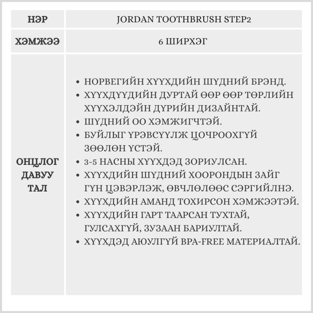 JORDAN TOOTHBRUSH STEP2 /ХҮҮХДИЙН ШҮДНИЙ СОЙЗ/