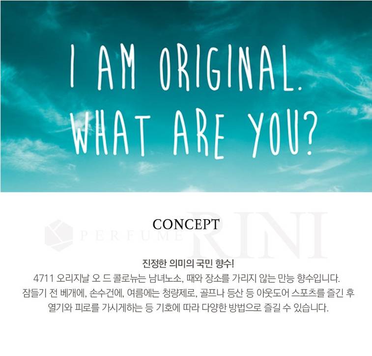 4711 Original Eau de Cologne үнэртэй ус нь олон зуун жилийн түүхтэй классик үнэртэн юм. Хүйс харгалзахгүй хэрэглэх боломжтой ба цитрус жимсний сэнгэсэн үнэртэй. Удаан тогтоцтой ба үнэр нь хөнгөн зөөлөн бөгөөд сэргээх мэдрэмж өгнө.