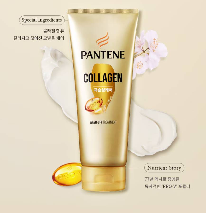 Pantene Collagen Treatment үсний тэжээл нь найрлагадаа коллаген болон витамины комплекс агуулсан тул үсний ширхэг бүрт тэжээл өгч гэмтэлтэй үсийг нөхөн сэргээнэ. Үс хугарах, тасрах, ширэлдэх, салаалах асуудлыг арилгаж үсийг чийгшүүлэн уян хатан болгох ба илүү гялалзсан эрүүл харагдуулна.