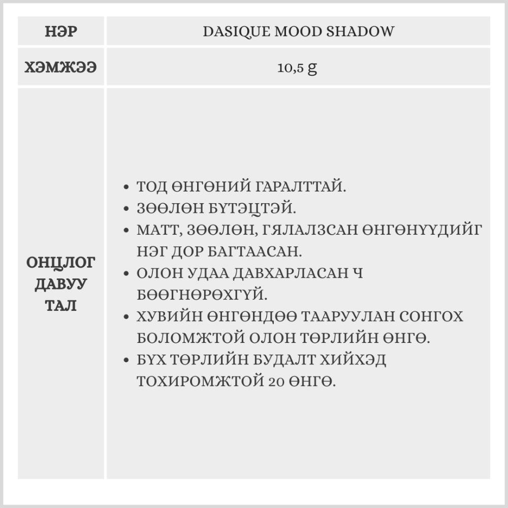 DASIQUE MOOD SHADOW/НҮДНИЙ ТЕНЬ/