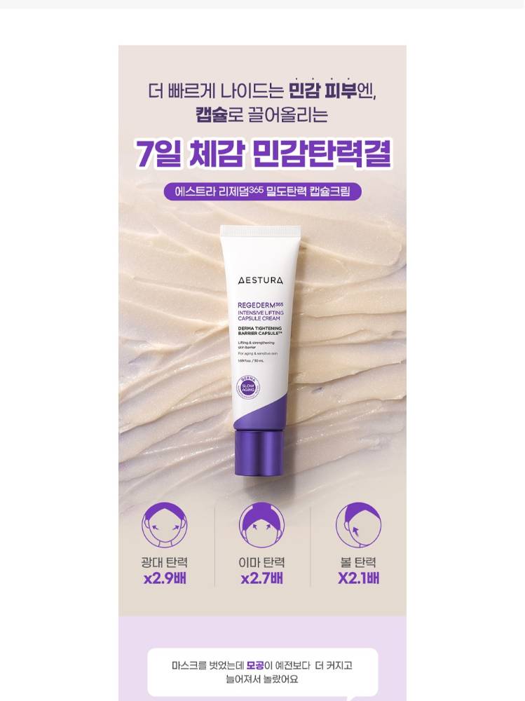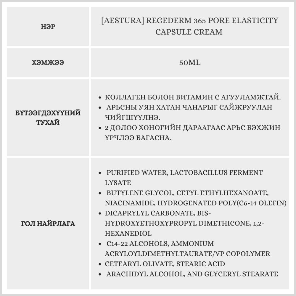 [Aestura] Regederm 365 Pore Elasticity Capsule Cream 50ml /Үрчлээний эсрэг тос/