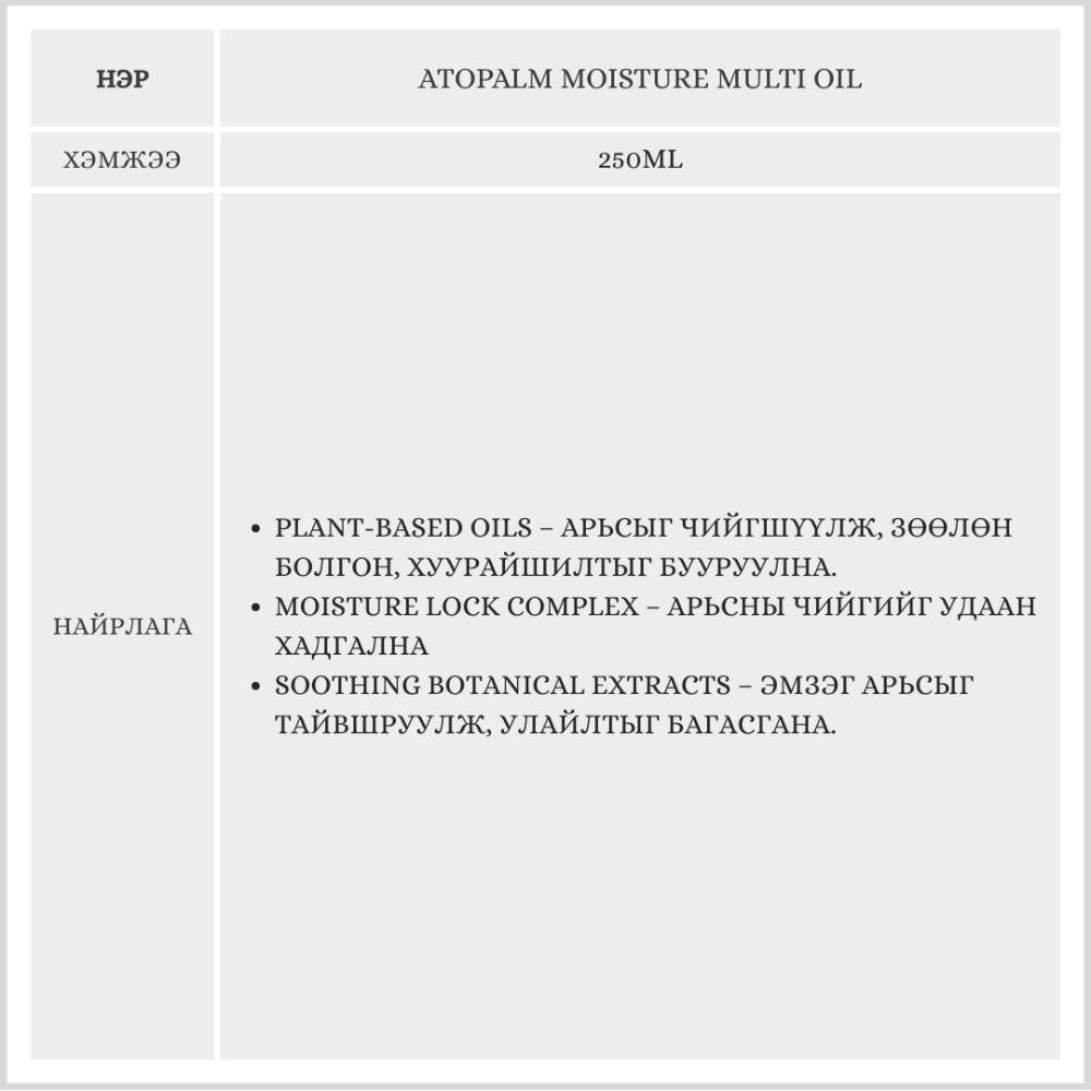 ATOPALM MOISTURE MULTI OIL, 250ML / ГЭР БҮЛИЙН ТОС /