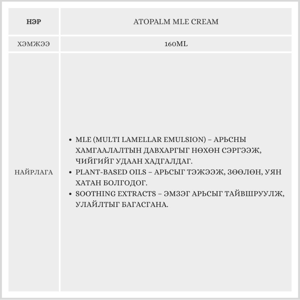 ATOPALM MLE CREAM, 160ML / АРЬС ЭМЧИЛГЭЭНИЙ ТОС /