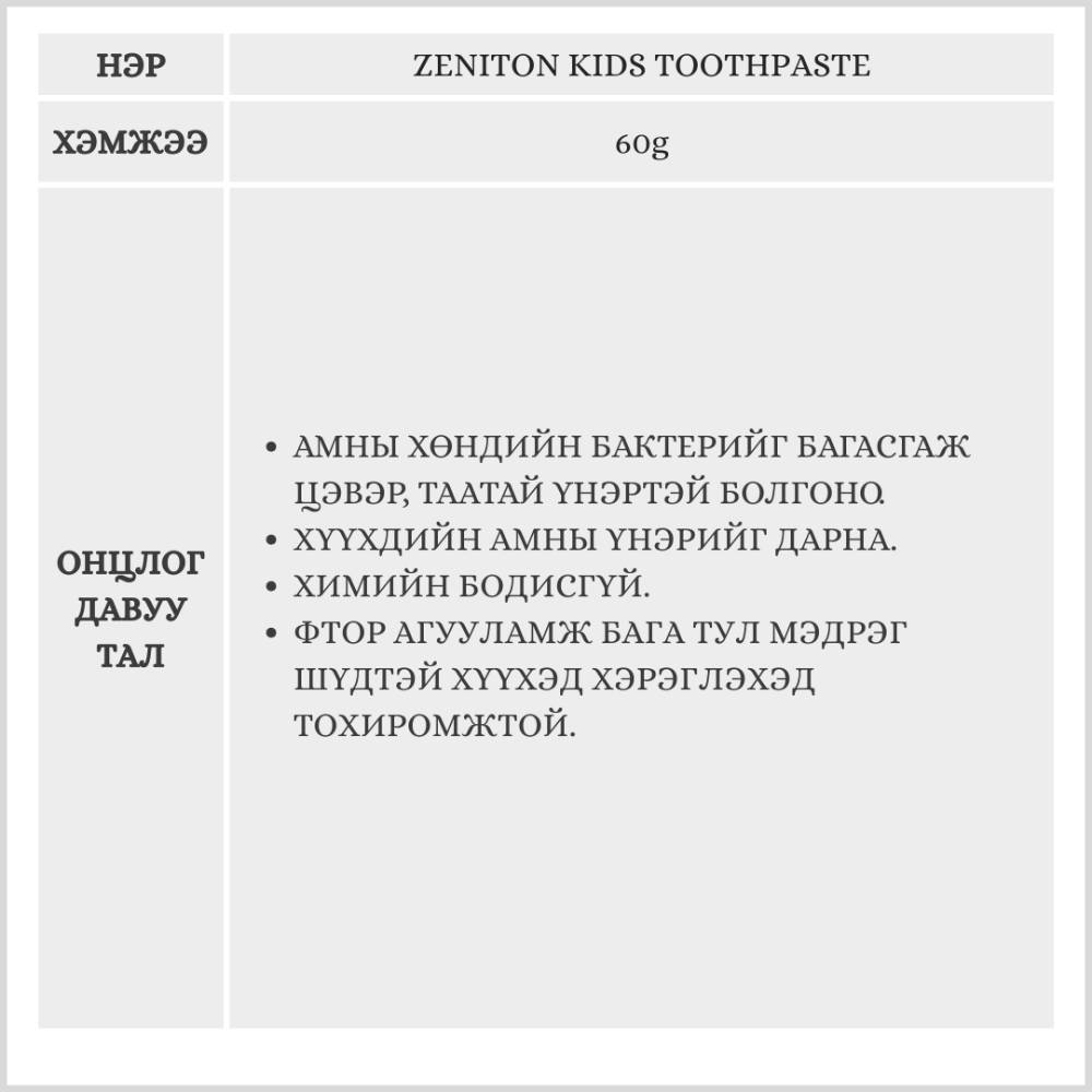 ZENITON KIDS TOOTHPASTE/ ХҮҮХДИЙН ШҮДНИЙ ОО /