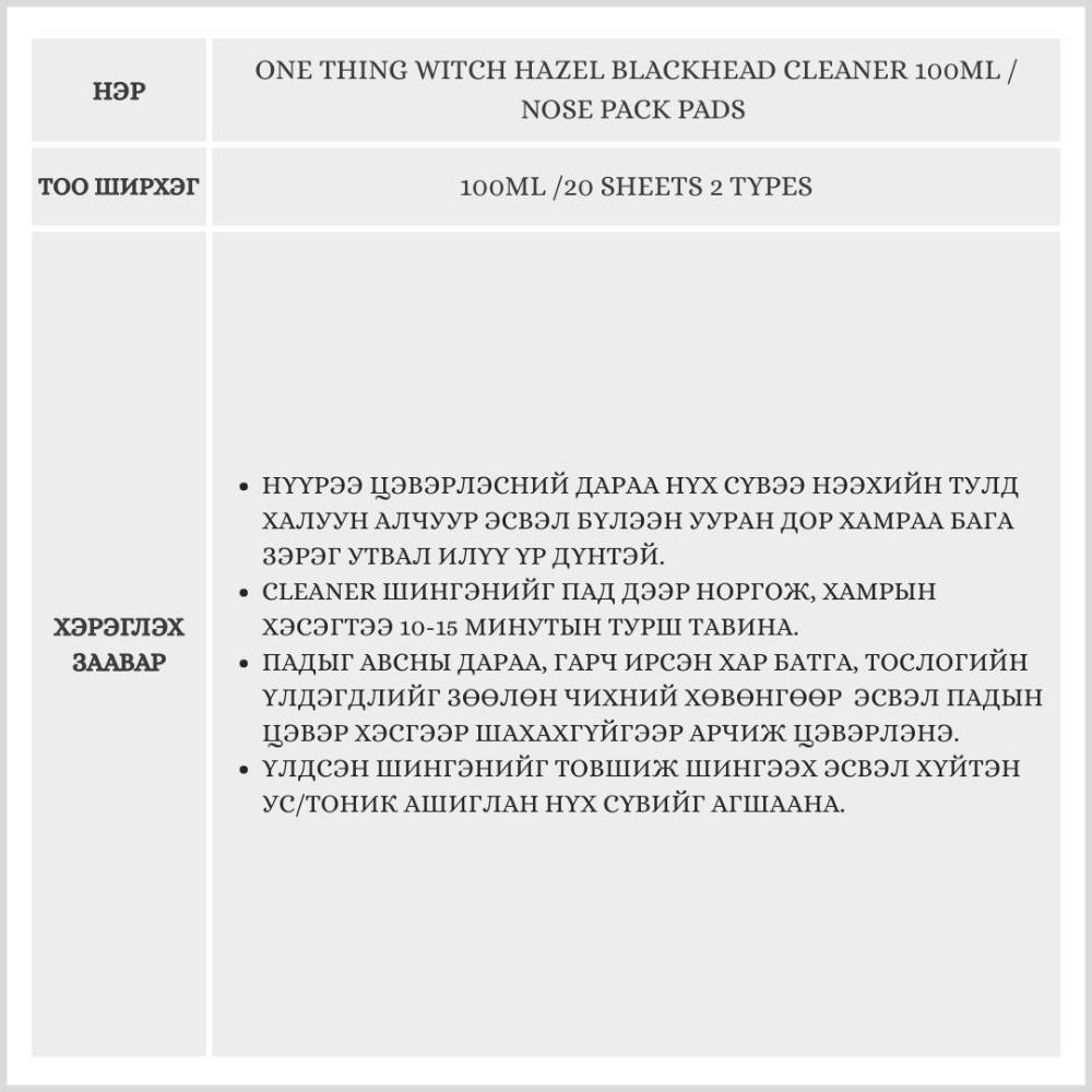 ONE THING Witch Hazel Blackhead Cleaner 100ml / Nose Pack Pads 20 Sheets 2 Types /хамрын маск/