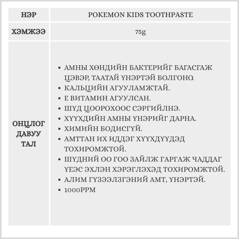 POKEMON KIDS TOOTHPASTE / ХҮҮХДИЙН ШҮДНИЙ ОО/ 2 ШИРХЭГ
