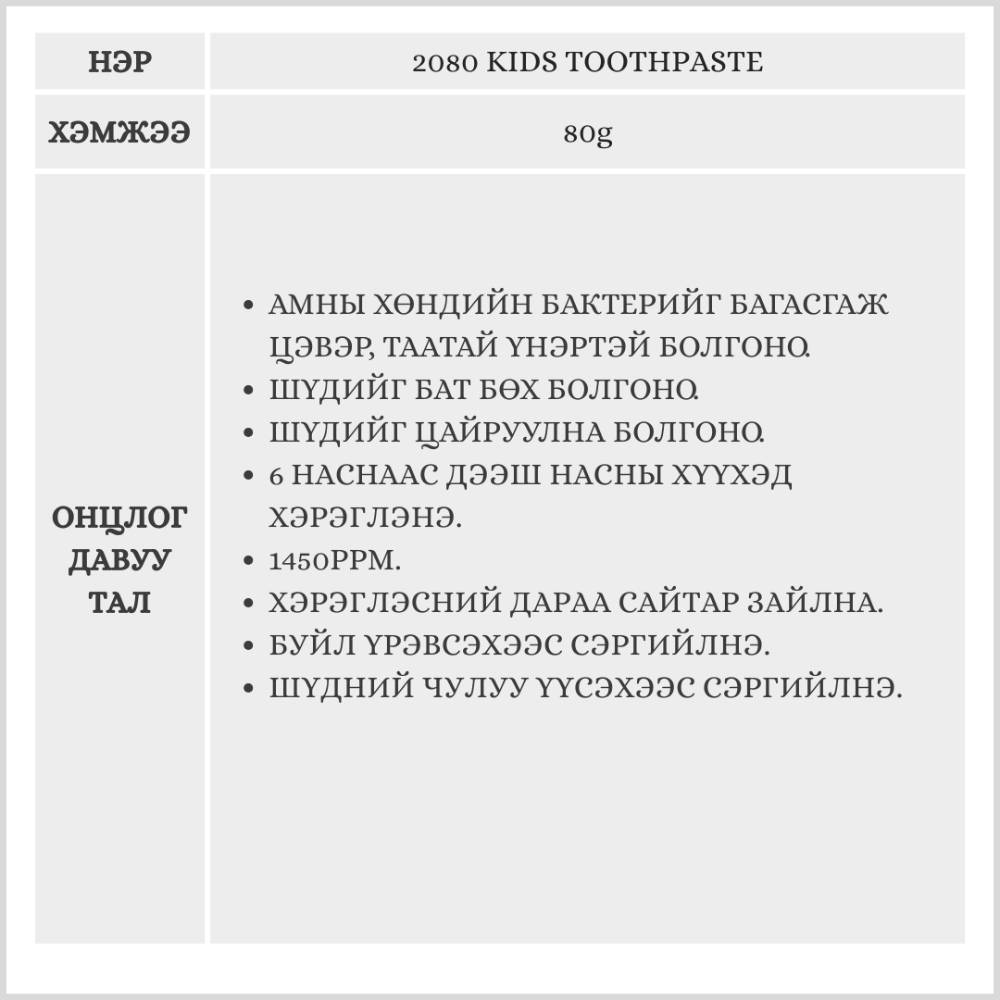 2080 KIDS TOOTHPASTE/ ХҮҮХДИЙН ШҮДНИЙ ОО/