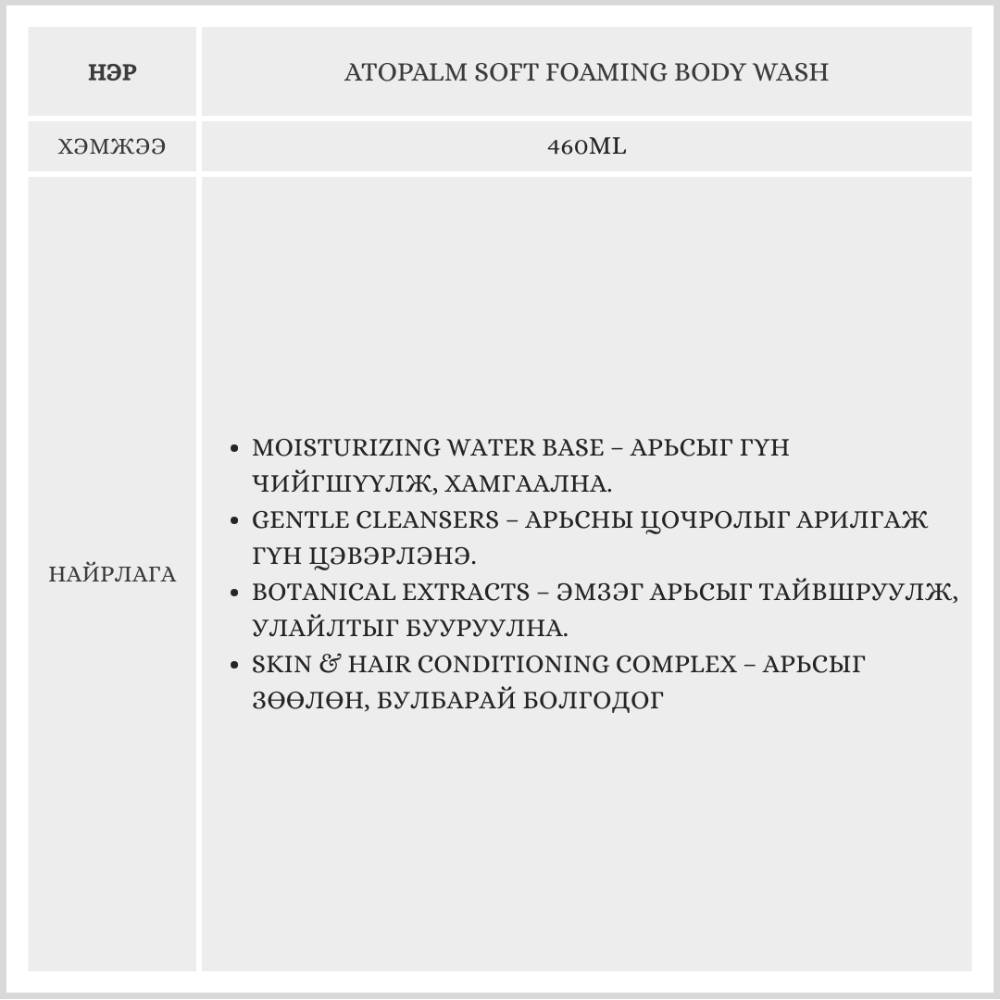 ATOPALM SOFT FOAMING BODY WASH, 460ML / БИЕИЙН ХӨӨСӨН САВАН /