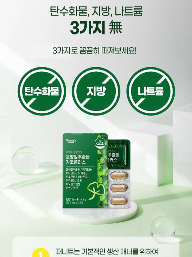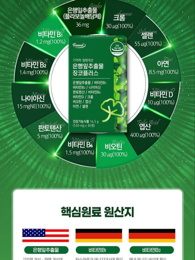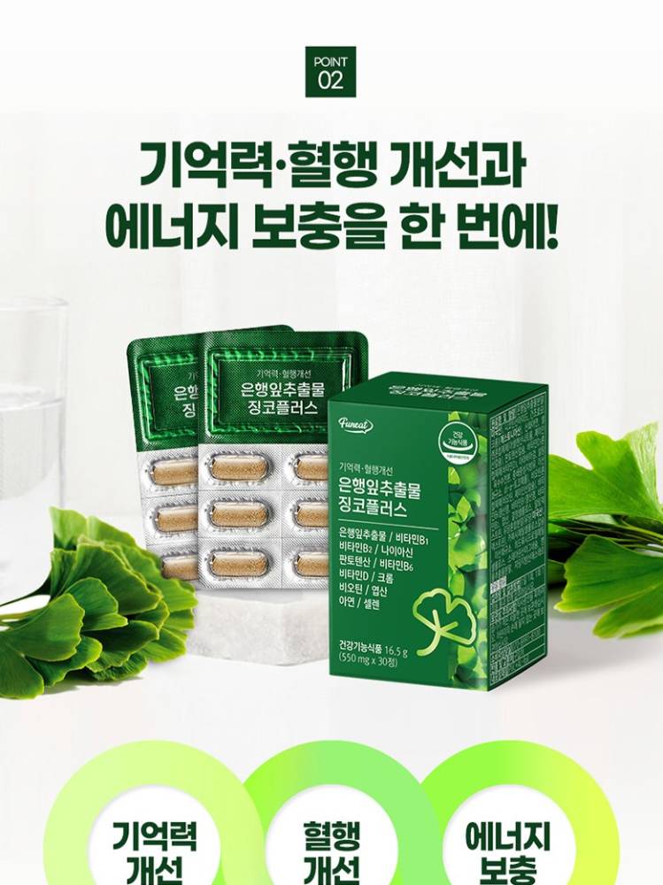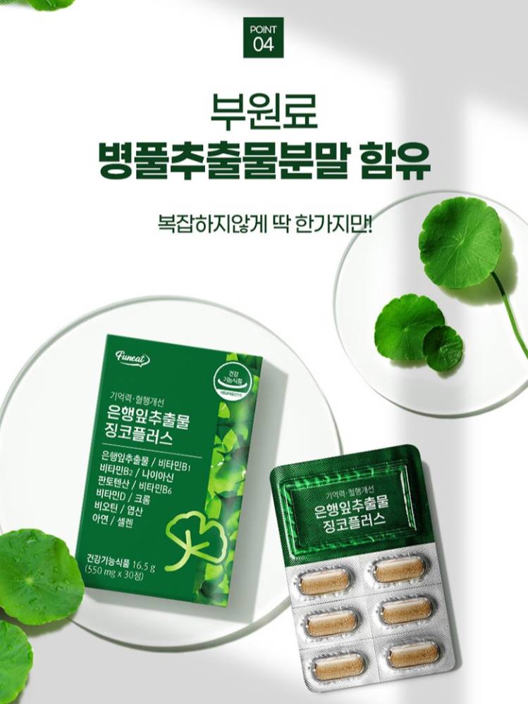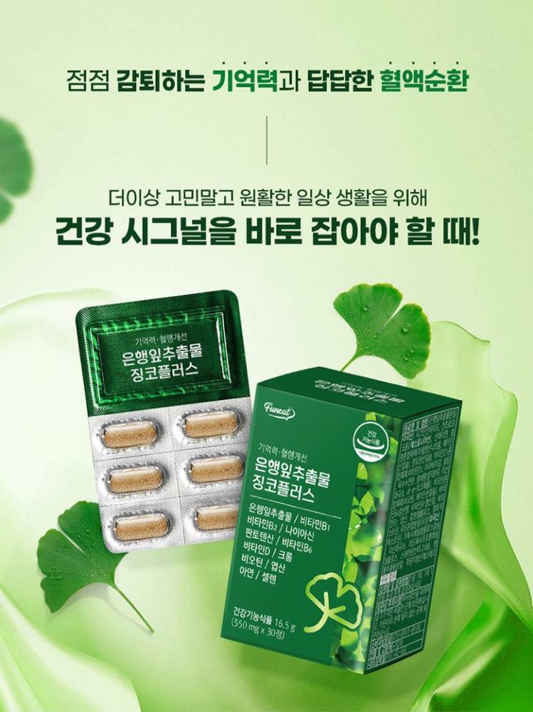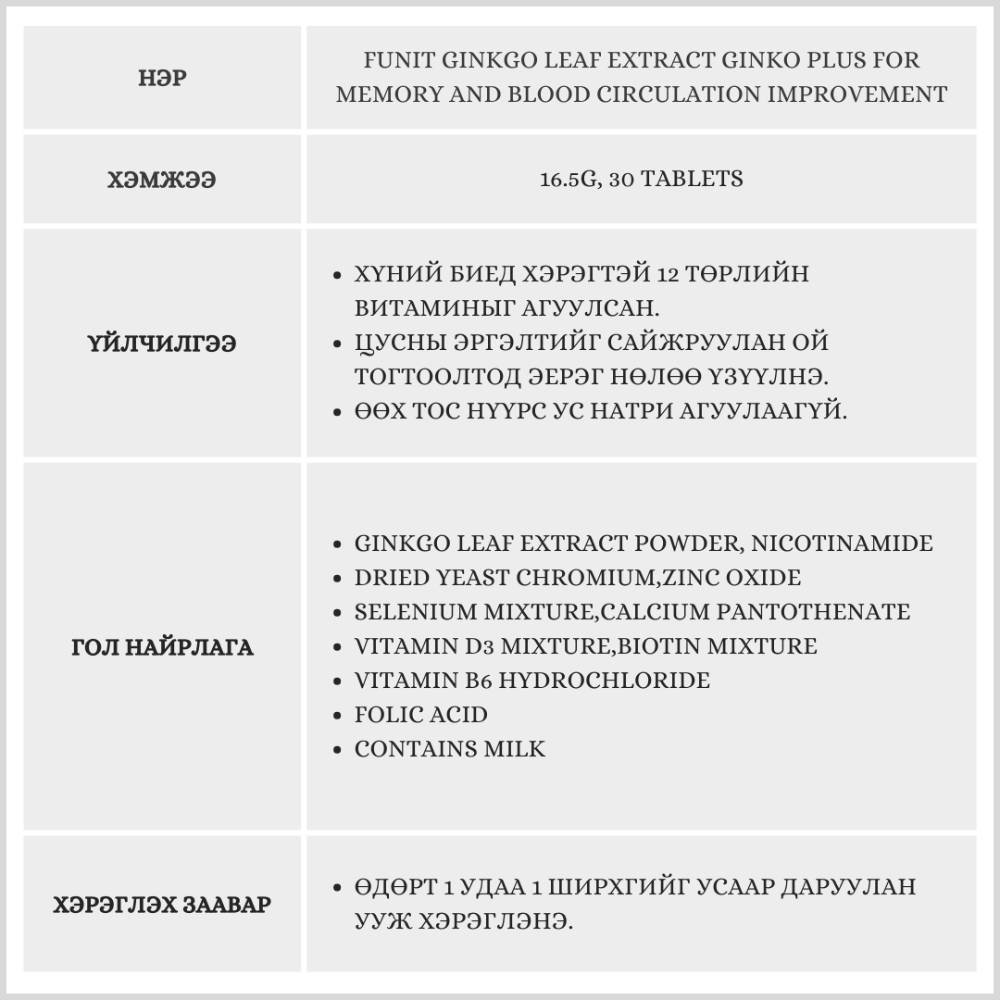 Funit Ginkgo Leaf Extract Ginko Plus for Memory and Blood Circulation Improvement, 16.5g, 30 Tablets, 1 Count /Нэмэлт тэжээл/