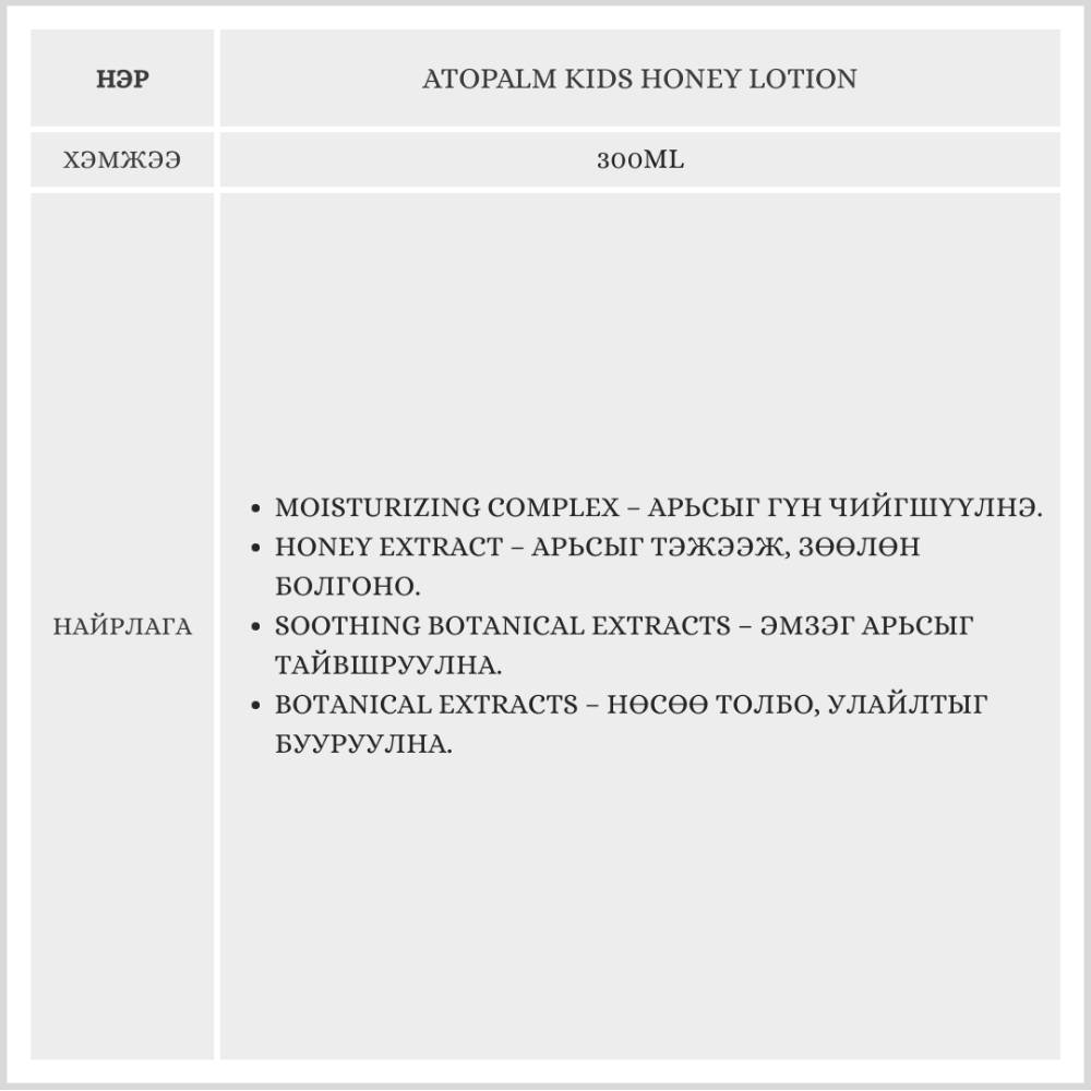ATOPALM KIDS HONEY LOTION, 300ML / ХҮҮХДИЙН LOTION /