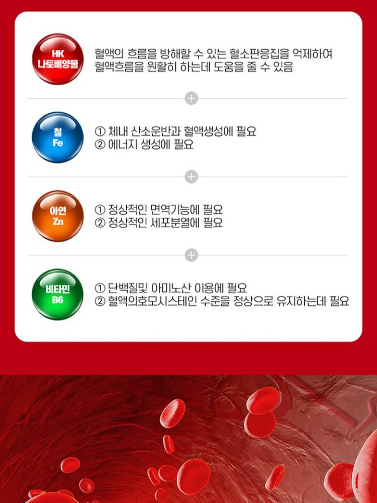 Энэхүү бүтээгдэхүүн нь цусны эргэлтийг сайжруулах нэмэлт бүтээгдэхүүн бөгөөд өөр олон төрлийн витамин болон фолийн хүчлийг зэрэг агуулсан.