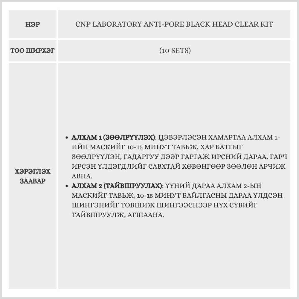 CNP Laboratory Anti-Pore Black Head Clear Kit 10 Sets /Хамрын Маск/