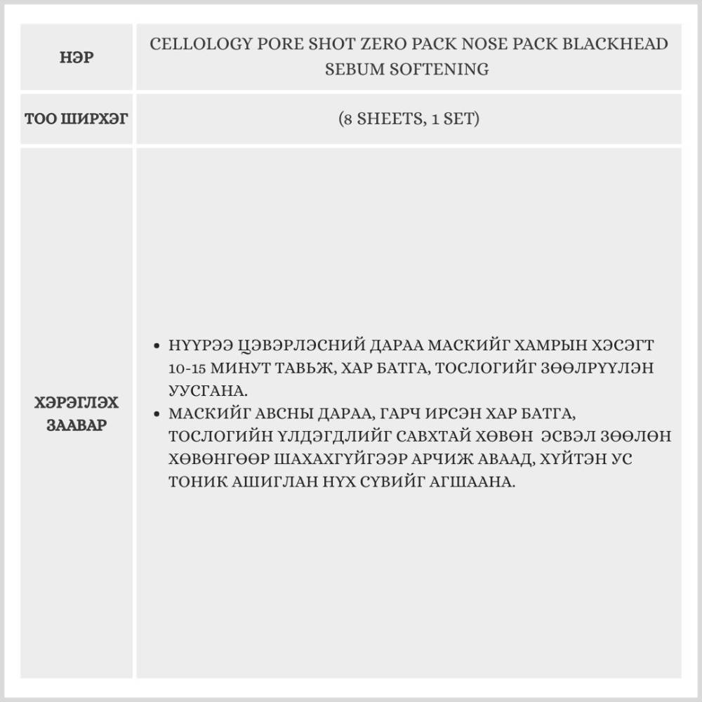 Cellology Pore Shot Zero Pack Nose Pack Blackhead Sebum Softening 8 Sheets, 1 Set /Хамрын Маск/