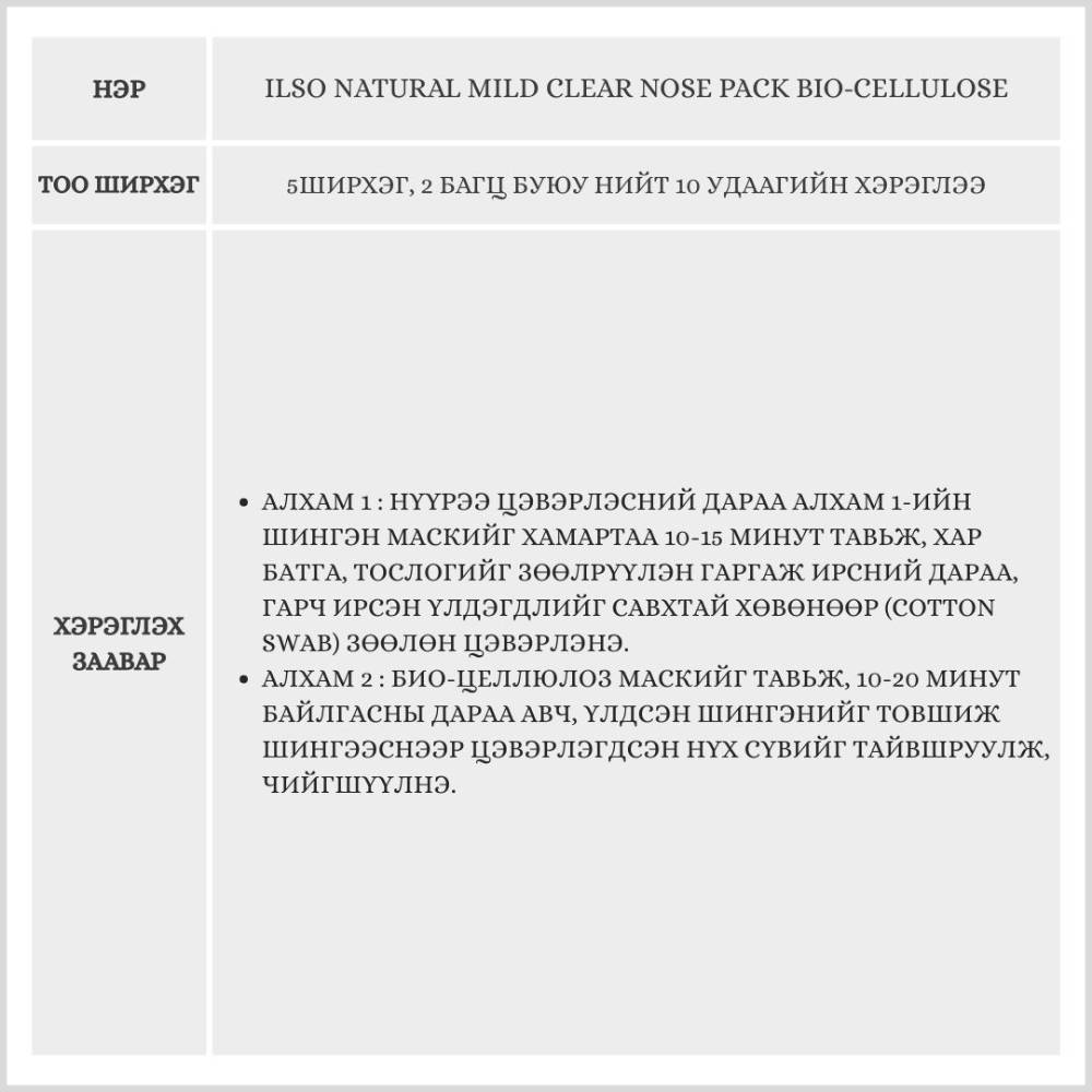 ILSO Natural Mild Clear Nose Pack Bio-Cellulose 5 Sheets, 2 Sets/Хамрын Маск/