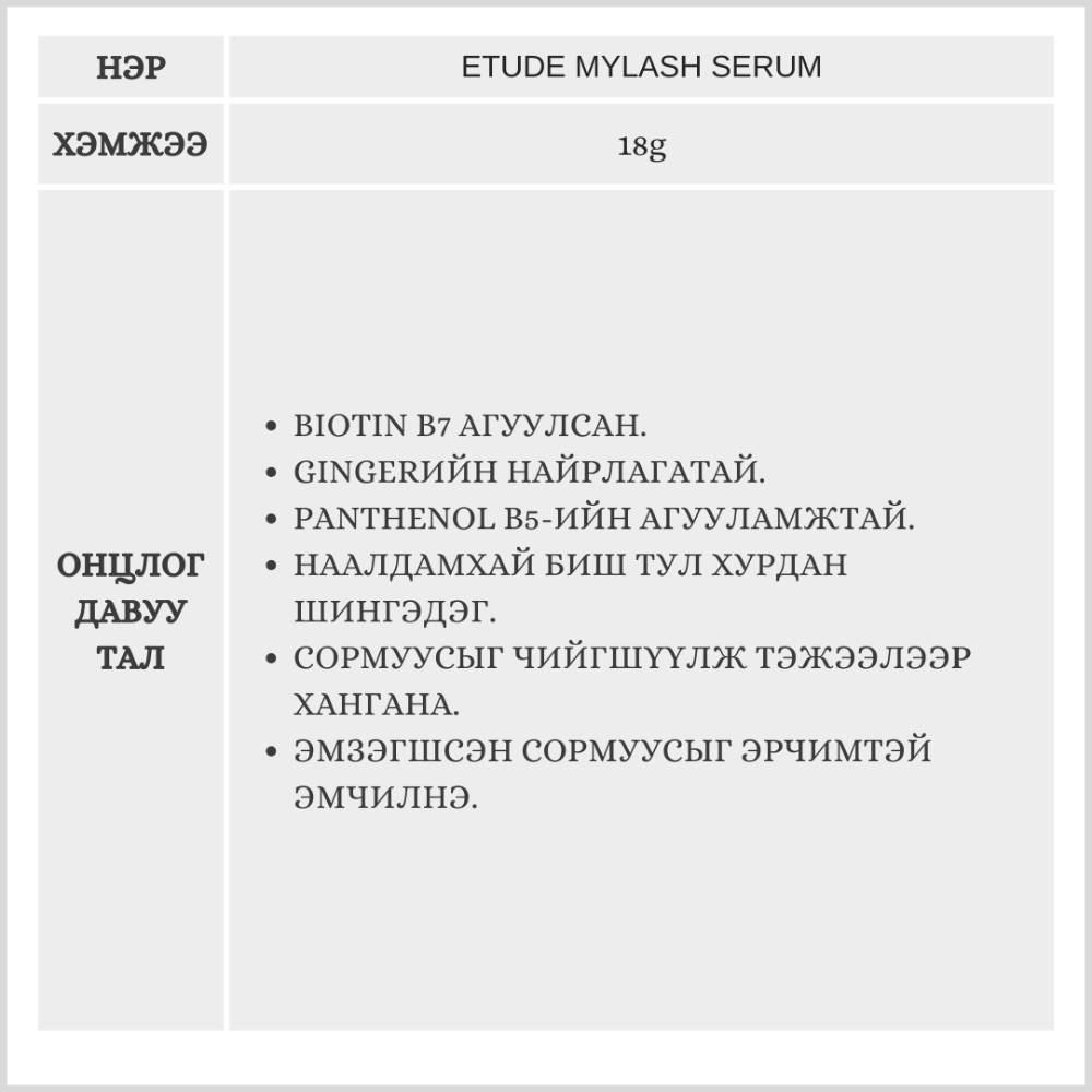 ETUDE MYLASH SERUM / СОРМУУСНЫ СЕРУМ /