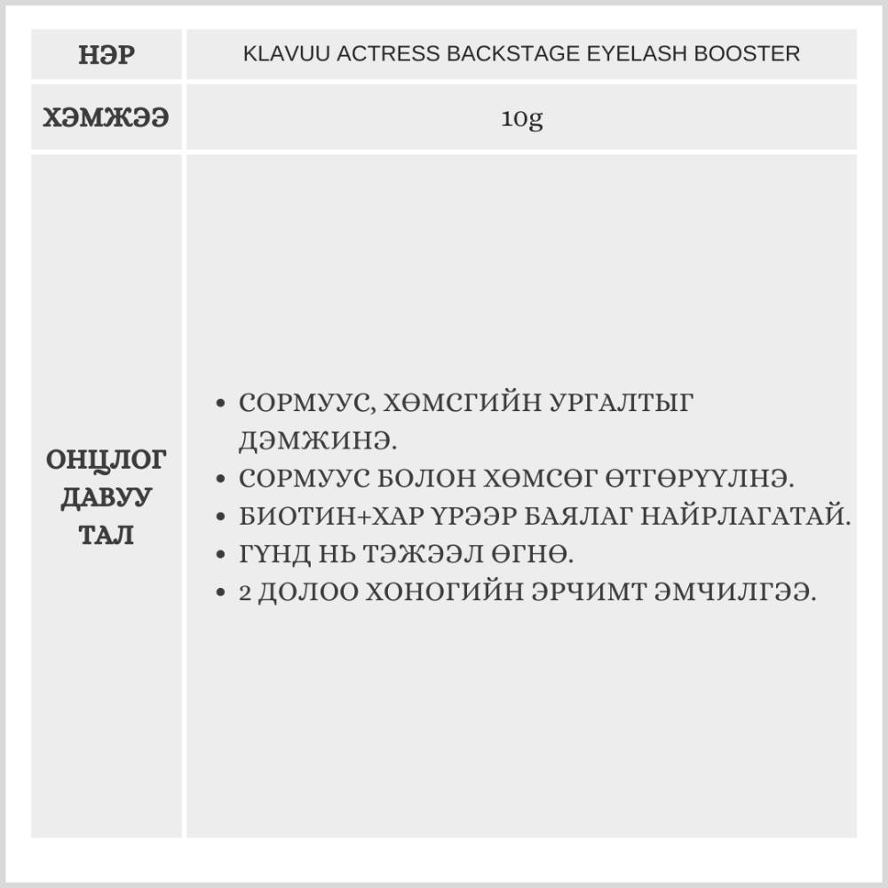 KLAVUU ACTRESS BACKSTAGE EYELASH BOOSTER/ СОРМУУСНЫ ТЭЖЭЭЛ/